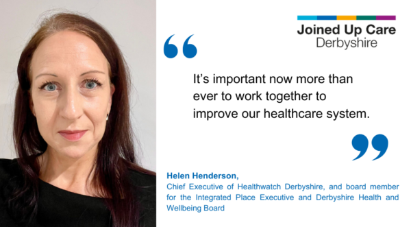 Introduction from Helen Henderson, Chief Executive of Healthwatch Derbyshire, and board member for the Integrated Place Executive and Derbyshire Health and Wellbeing Board